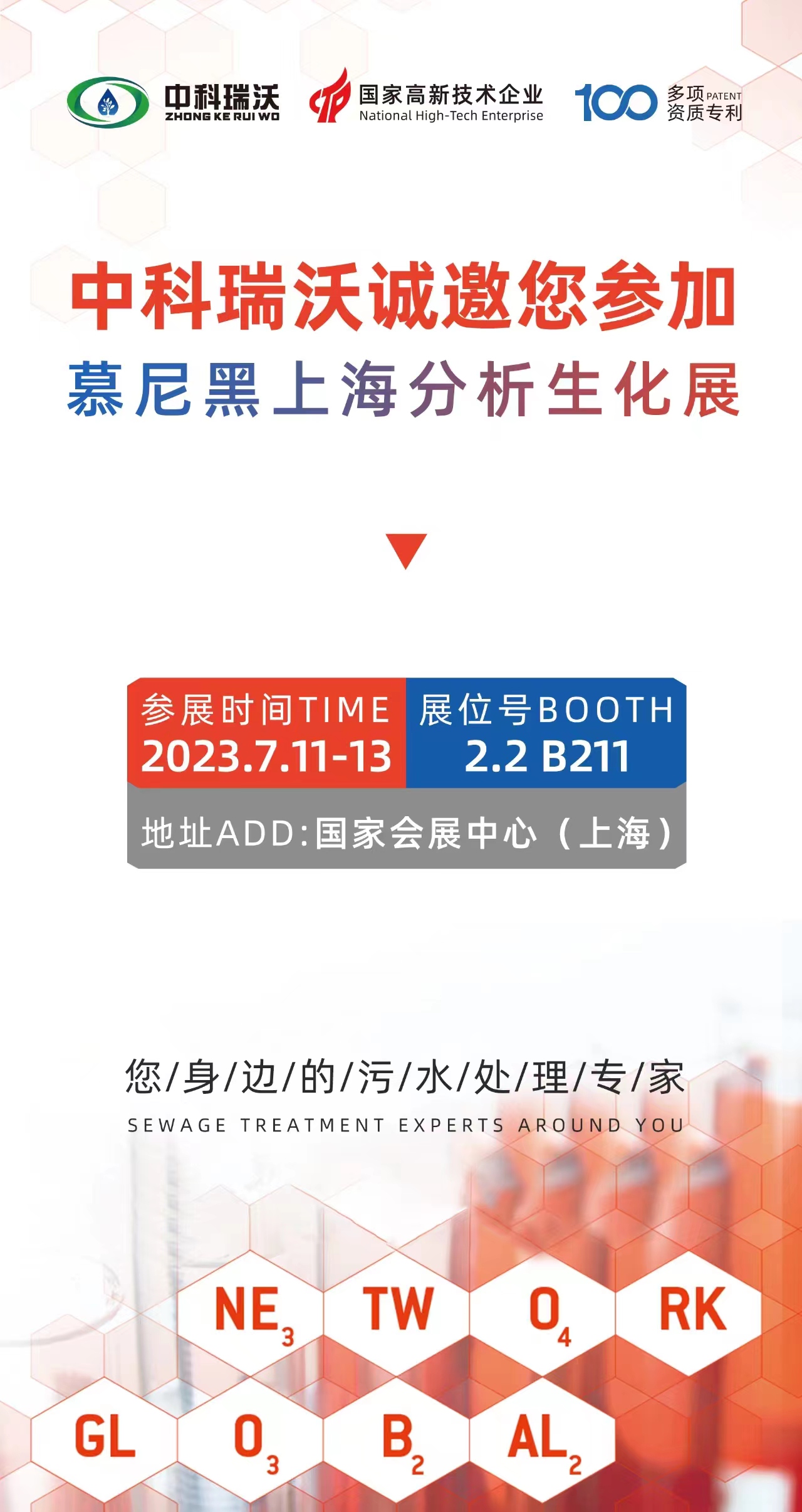 慕尼黑上海分析生化展將于7月11日-13日開展,為期三天,誠邀您蒞臨國家會展中心中科瑞沃2.2 B211展位,我們將為您提供專業(yè)系統(tǒng)化的實驗室污水解決方案!